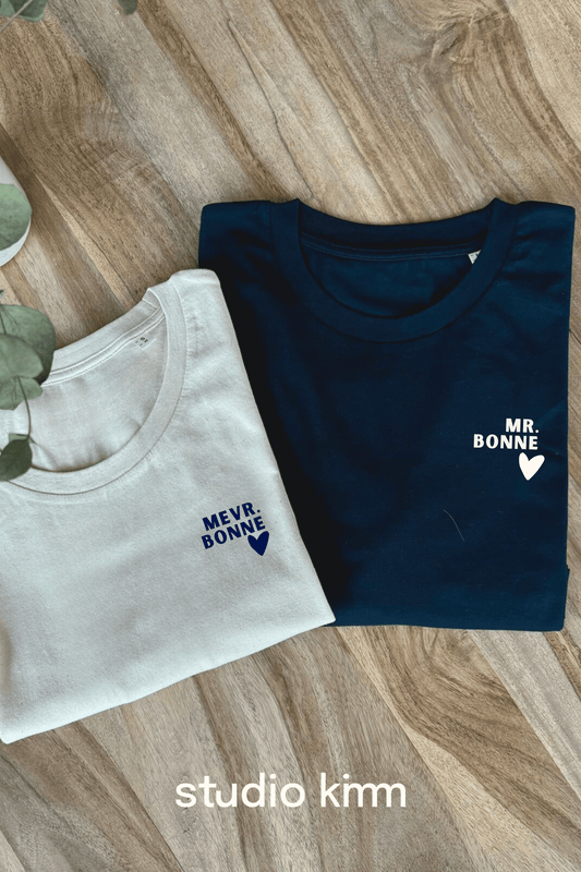 Matching koppel T-shirt, "meneer" met gewenste familienaam