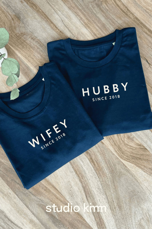 Matching koppel T-shirt, vrouw I mevrouw I wifey - met jaartal trouwdatum
